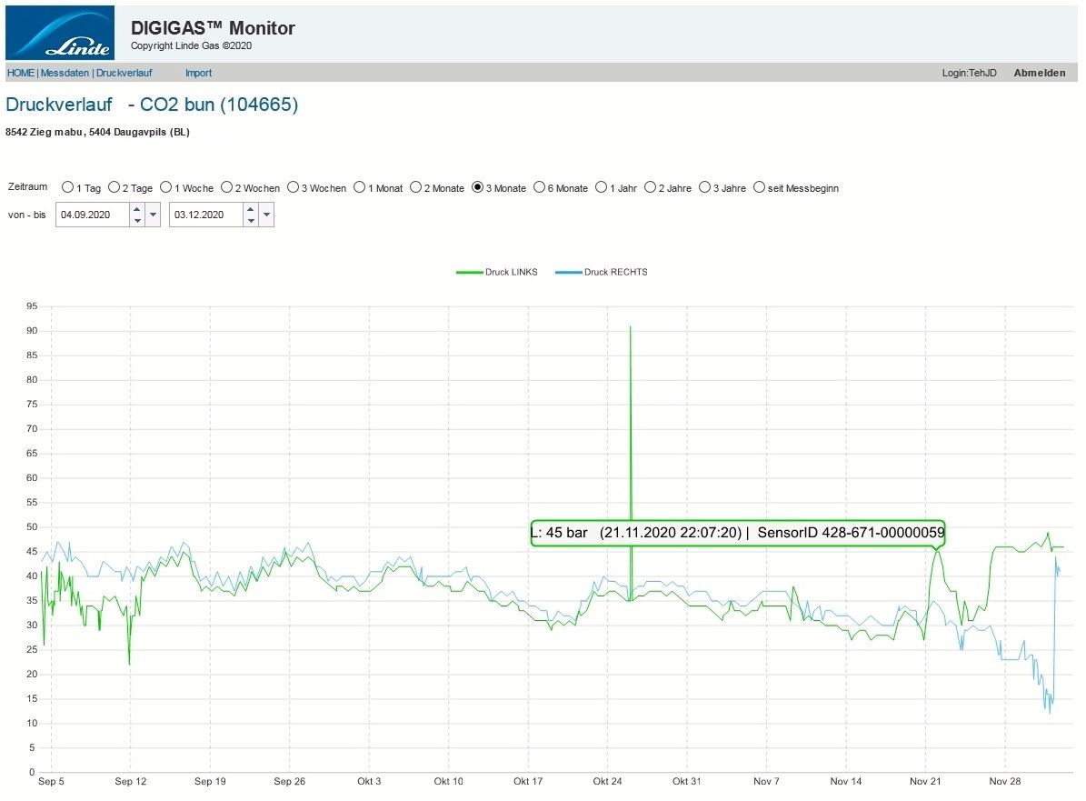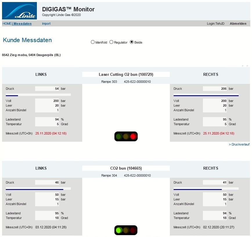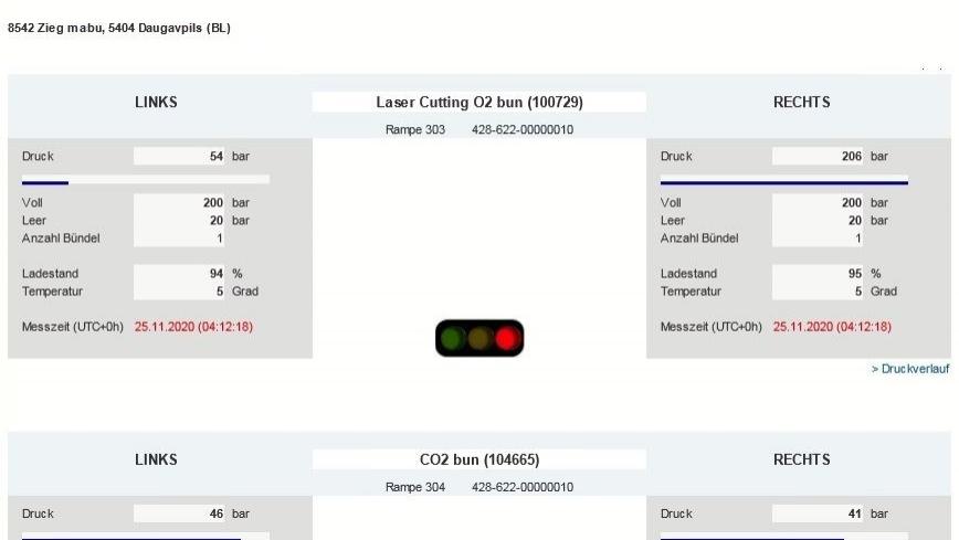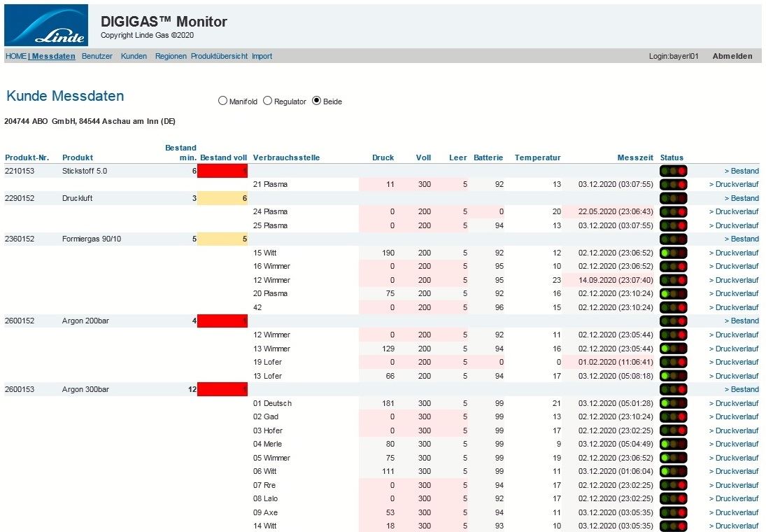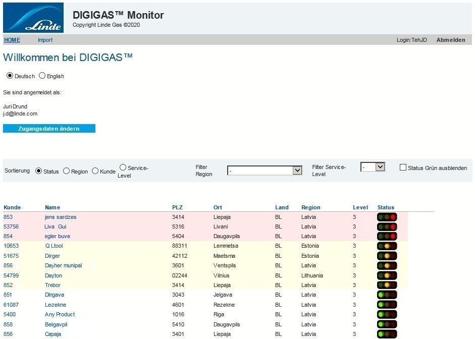 die Messdaten werden weiterverarbeitet und für Linde Mitarbeiter zur Darstellung im Intranet für das Monitoring aufbereitet