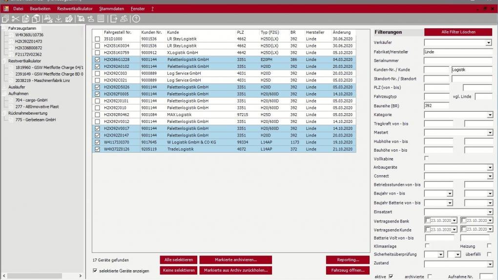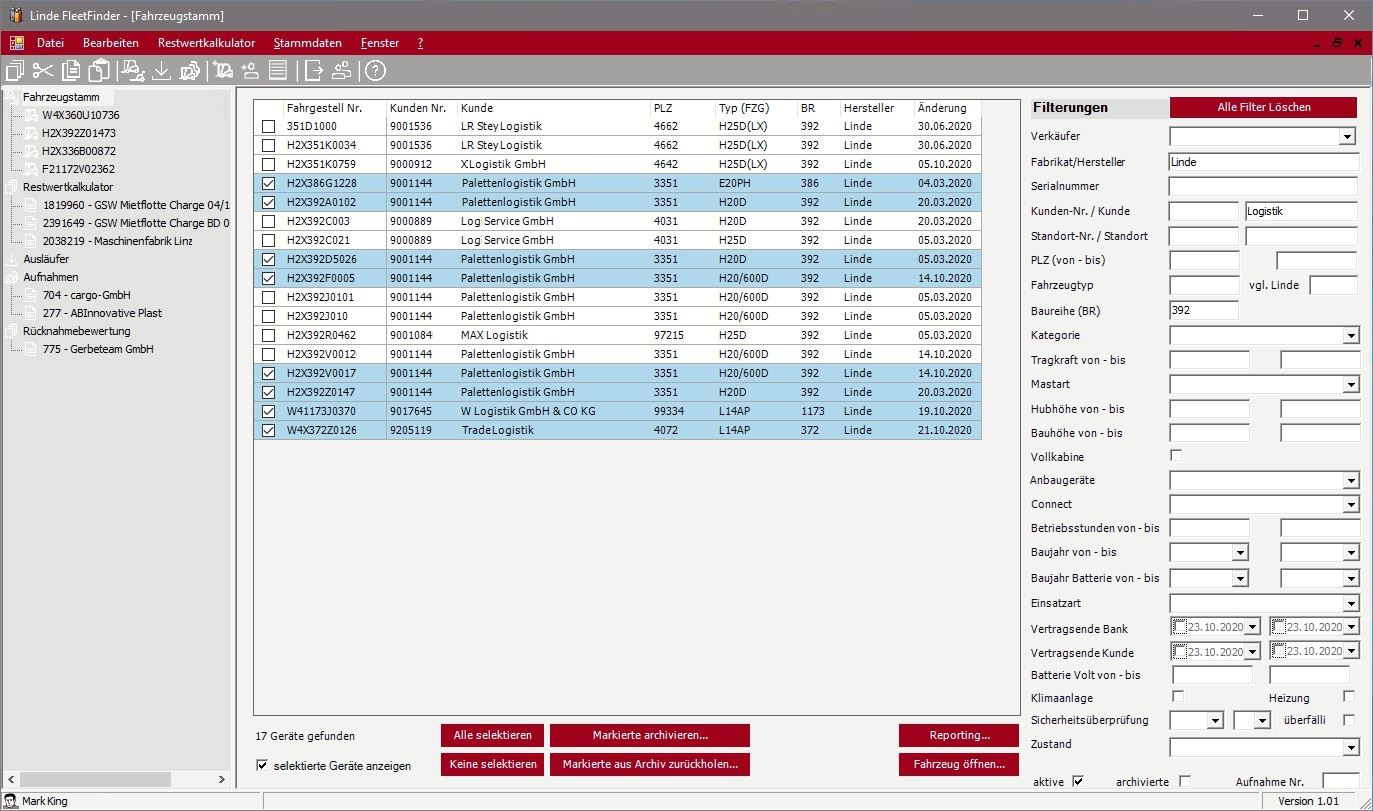 Diese Anwendung dient zu Verwaltung des Fuhrparks an Staplern und Flurförderzeugen der Firma Linde Material Handling an unterschiedlichen Standorten in Österreich und Deutschland.