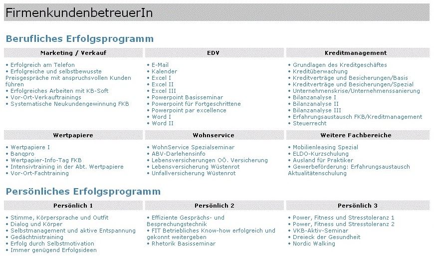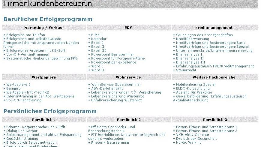 Mit dieser Anwendung wickelt die VKB-Bank das komplette Seminar- und Fortbildungsprogramm und fachspezifische Zertifizierungen für all ihre Mitarbeiter ab.