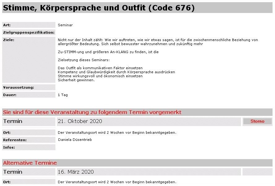 Erfassung und Wartung der internen und externen Seminare und Stammdaten durch die Abteilung Personalentwicklung